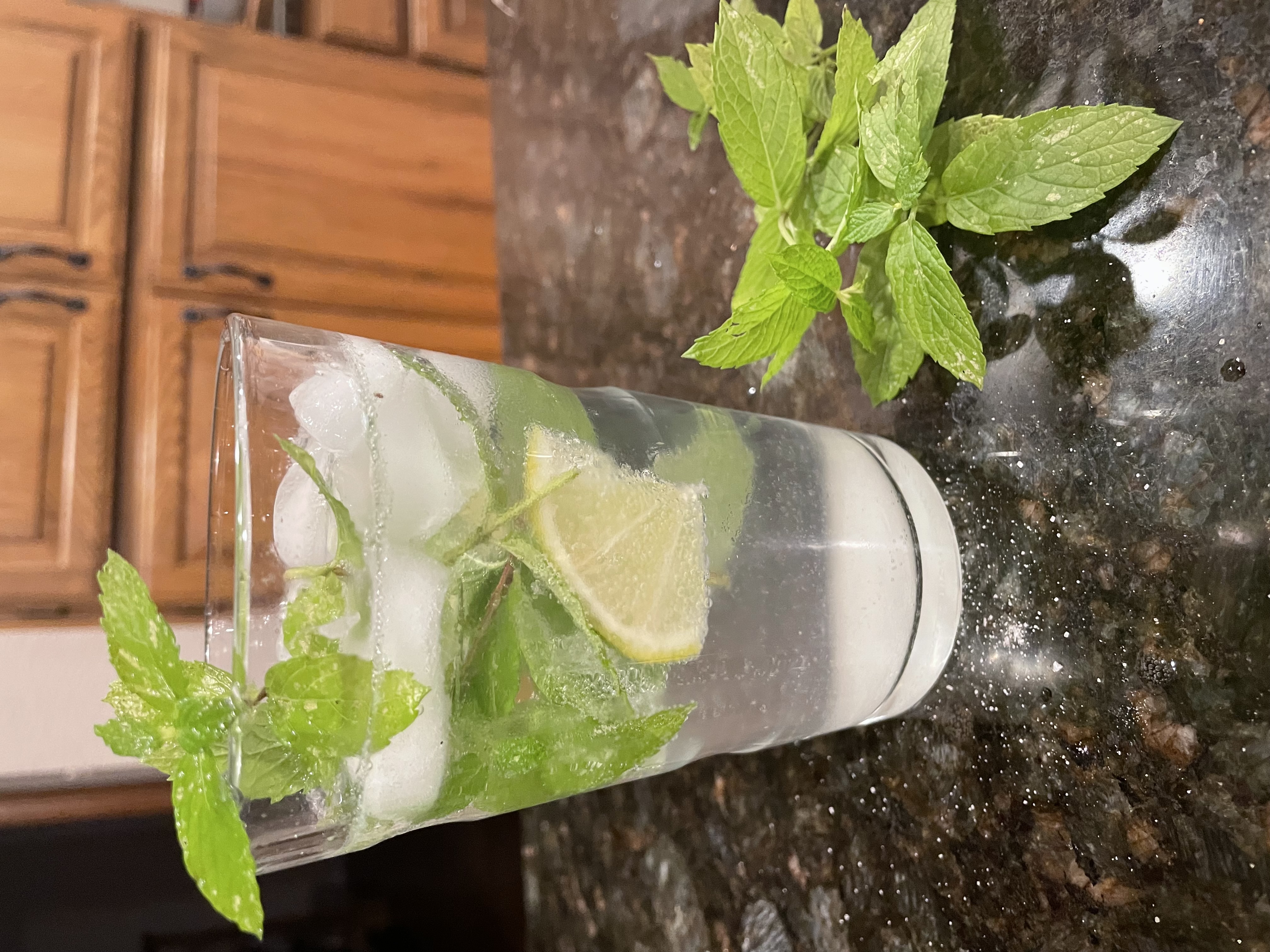 La combinazione lime/rhum/menta per me e' fantastica. Non vado pazza per i super alcolici ma tra tutti il rhum e' quello che preferisco. Il mojito originale pesta il lime con la menta e lo zucchero ma io personalmente preferisco usare il succo di lime perche' non mi piace bere e sentire i pezzi di polpa di lime.