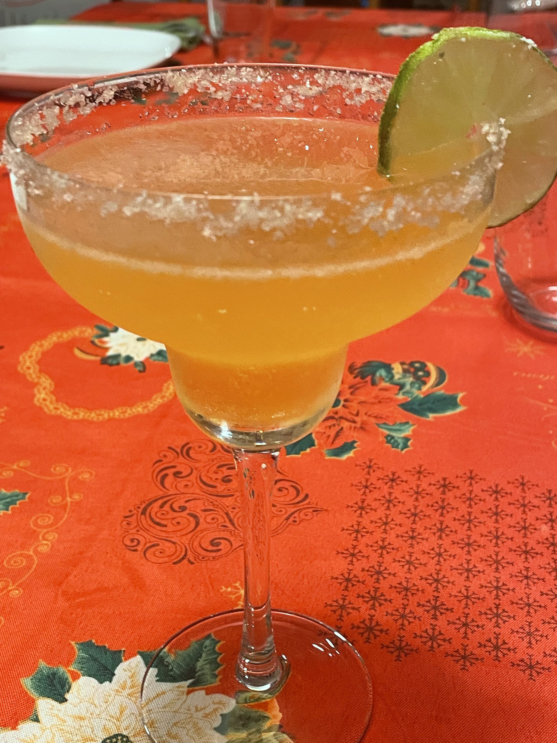 Qui non e' la California, ma i ristoranti messicani non sono a male (pero' detto da una che in Messico non c'e' mai stata..). Quando andiamo, la margarita e' d'obbligo ( non vi dico che bicchiere enorme ti portano). Mi piaceva cosi' tanto che ho imparato a farmela anche a casa. Non la faccio spesso (perche' io rimango comunque una persona da vino rosso) ma quando mio figlio chiede guacamole e pico de gallo, io ci aggiungo tortillas, strisce di manzo, peperoni e cipolle e si mangia messicano anche a casa.