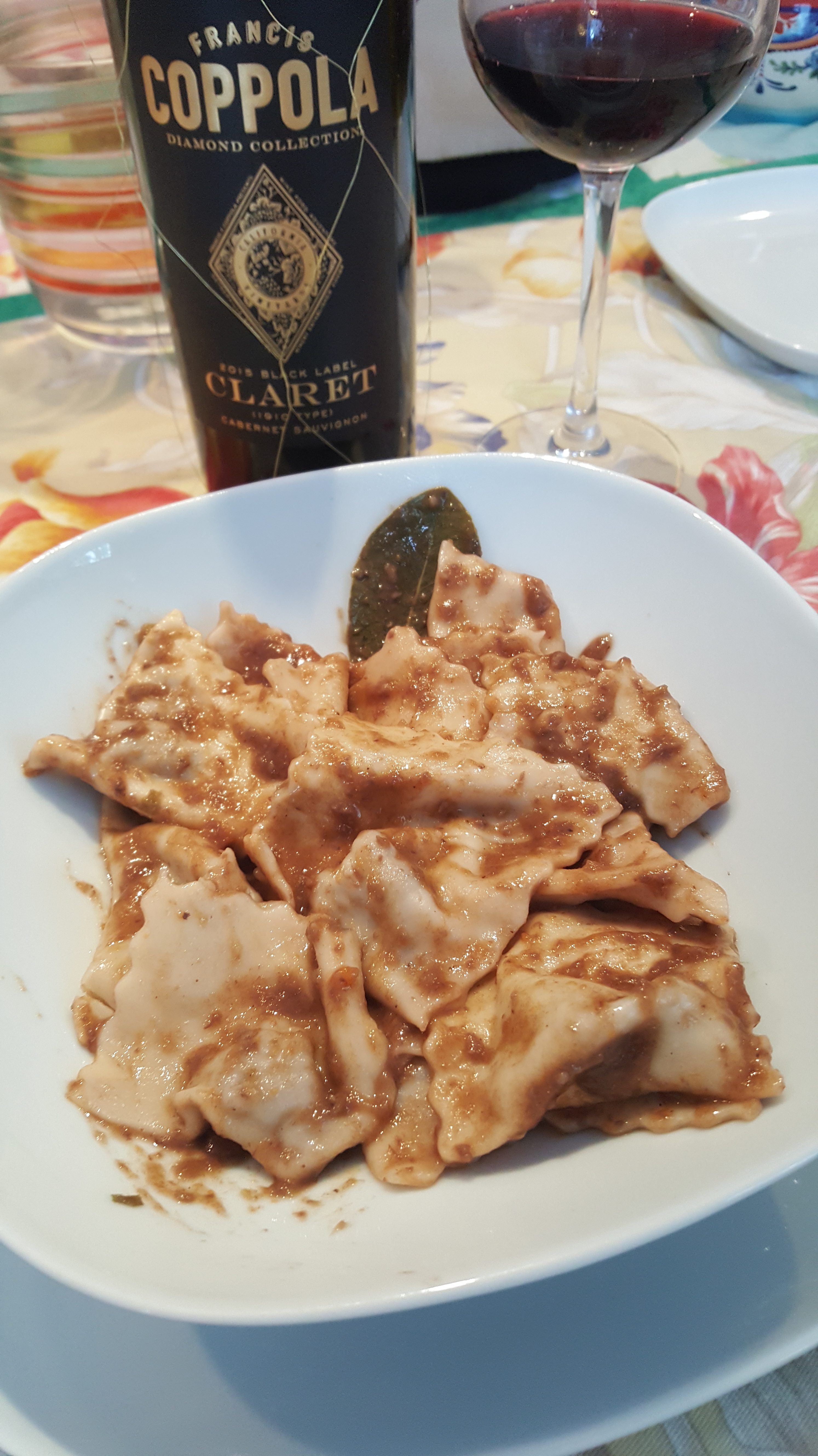 Ripetete i passaggi per altre 3 volte fino a finire la pasta. Cuocete i ravioli per pochi minuti in acqua bollente salata. Nel frattempo scaldate il sugo del brasato e aggiungeteci il brasato tritato che avevate messo da parte. Quando i ravioli son pronti, tuffateli nel sugo e servite.