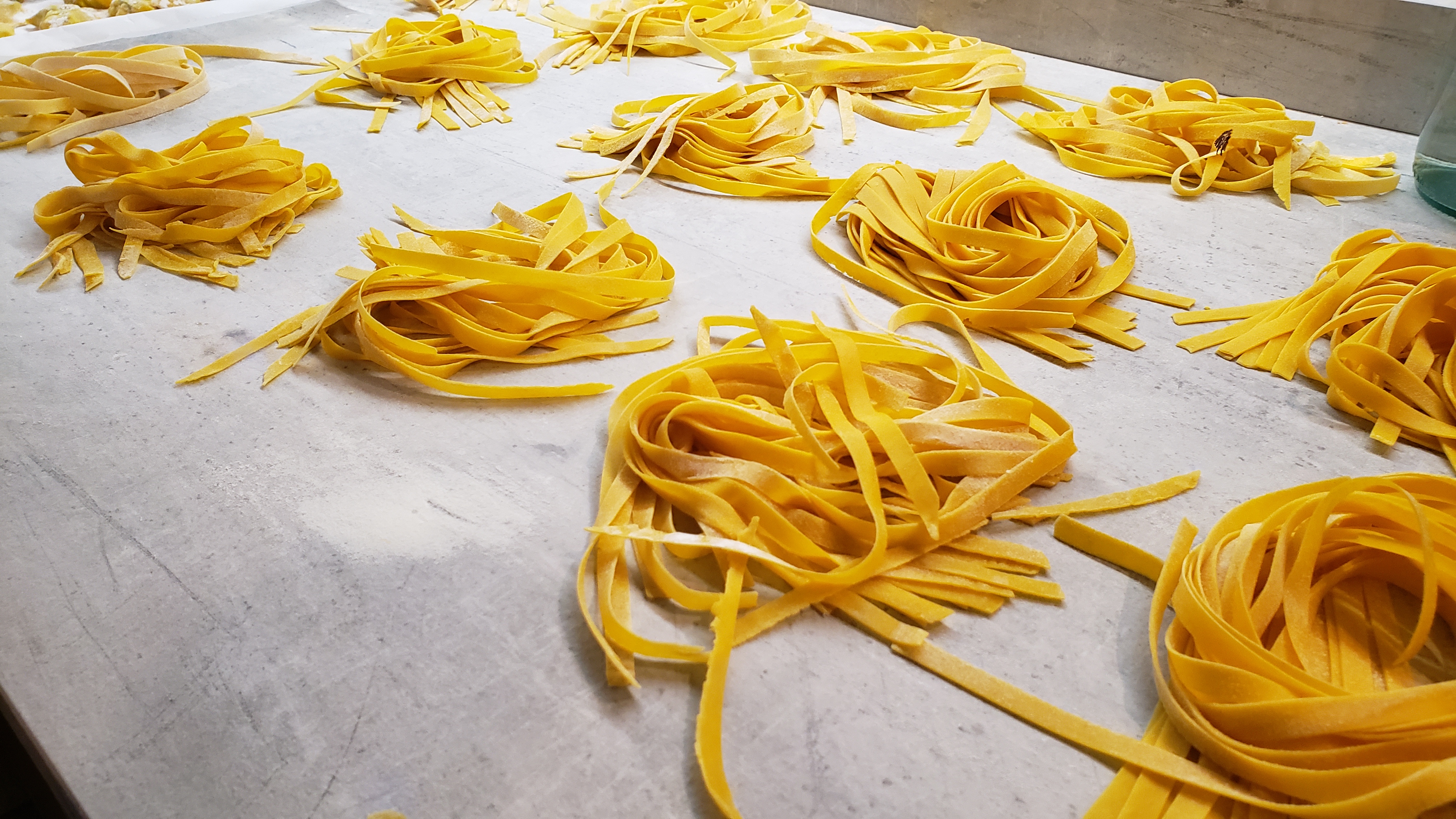 Per i ravioli abbiamo fatto la pasta con un rapporto uova e farina di 100 gr farina 00 : 1 uovo intero. Il ripieno zucchine e gamberetti è un gran classico e li abbiamo conditi con burro fuso. Con la pasta rimasta abbiamo fatto le tagliatelleeeeeeee...ma che buone sono!?!??!