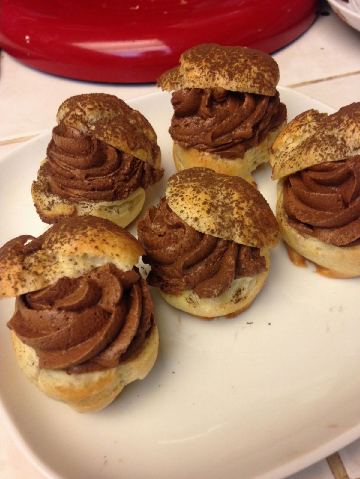 Anyway, the guy could fix the furnace only on Friday. Once I could feel warm again in my house, the second thought was: baking. But not normal baking, I deserved something spacial. And what more special that something with whipped cream (which I love!!)? My favorite dessert with whipped cream are cream puffs or bigné or éclaires (long) or whatever done with pate-à-choux.