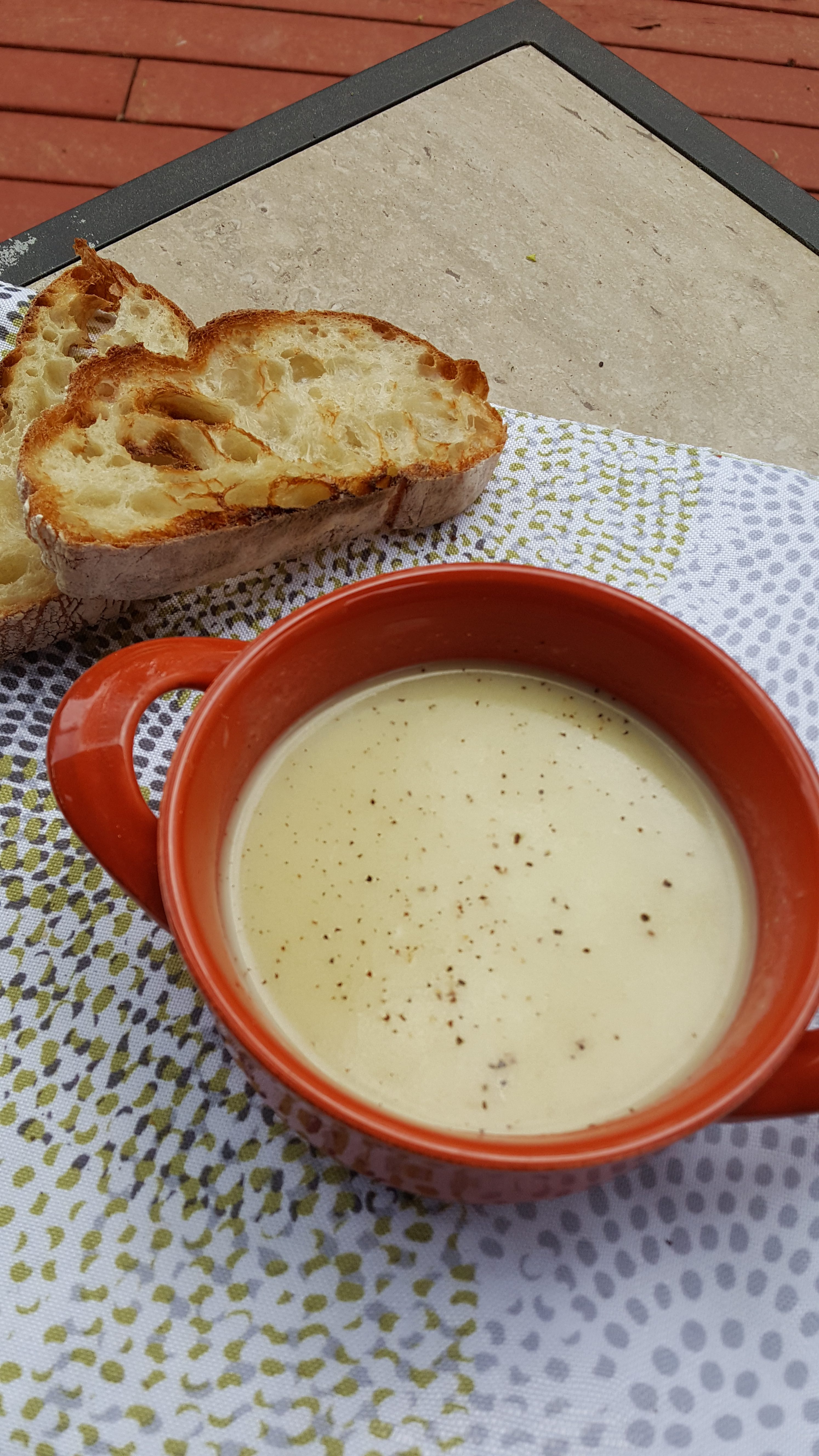 in cui mi siedo sul divano e non mi alzo più. Di solito son talmente stanca che mettermi ai fornelli é l'ultima cosa che vorrei fare. Però qualcosa in tavola devo portare quindi mi preparo in anticipo e la potage parmentier e' in cima alla lista.